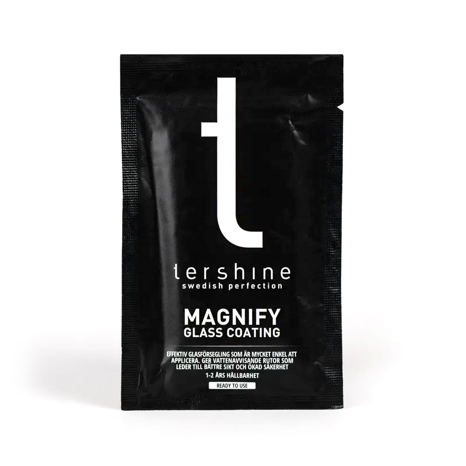 Tershine Magnify är en högpresterande glasförsegling som ger en vatten-, smuts- och isavvisande yta på alla typer av glas- och plastytor. Produkten förbättrar sikten avsevärt vid regn, snö och smuts – vilket ökar säkerheten, komforten och körglädjen i alla väderförhållanden.