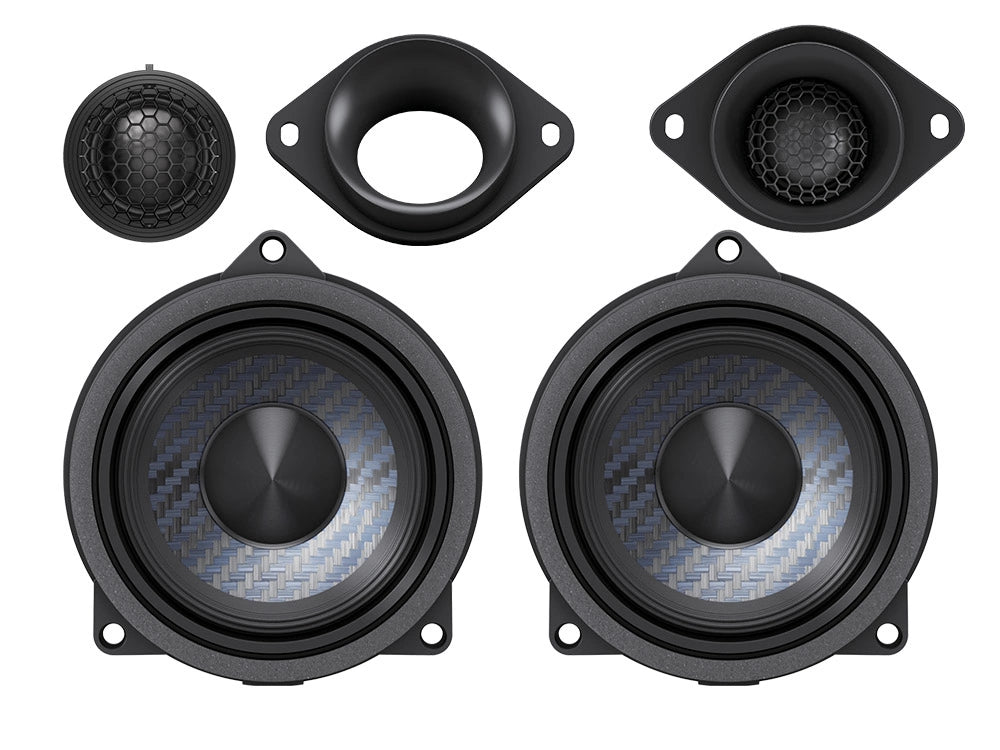 Dörrhögtalarna och centerhögtalaren (tillval) använder vävda kolfibermembran, Tetoron-diskanter och Alpines HAMR-upphängning, vilket ger hög känslighet, låg distorsion och kristallklar återgivning.