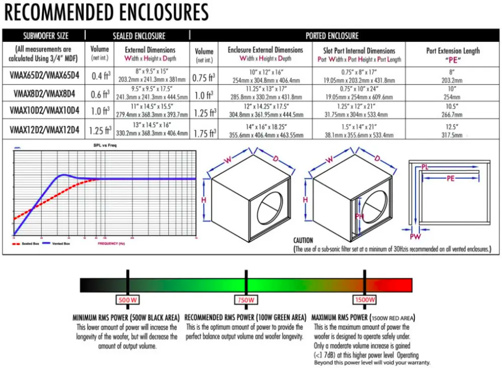 Tekniska specifikationer – Cerwin Vega VMAXX 12" D4