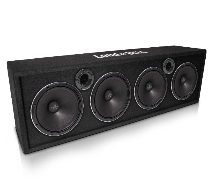 1x LOUD AS HELL 4x8" raggarplanka – sluten slotport-låda med plats för midbasar och diskanter, byggd i kraftig MDF