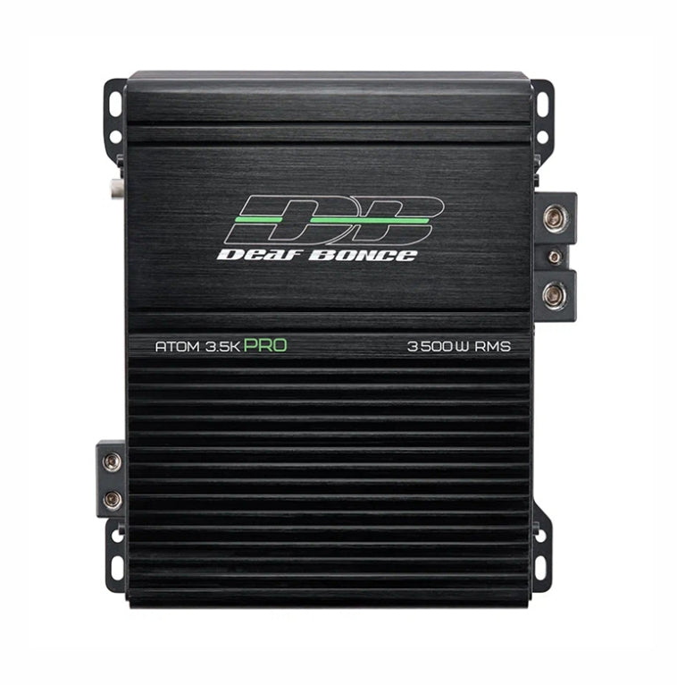 Deaf Bonce Atom 3.5K Pro, ett kompakt monoblock som kombinerar hög effekt med precision och flexibilitet. Med 3500W RMS, kraftiga fläktar, avancerat delningsfilter och medföljande basfjärrkontroll får du ett slutsteg som levererar ren, kontrollerad och dynamisk bas i varje ton.