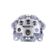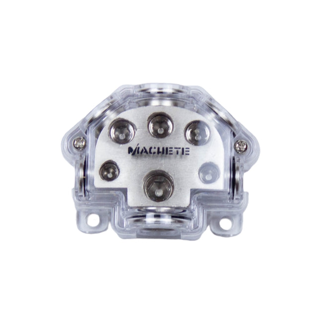 Machete MD-15 är en kraftig och kompakt strömfördelare från Deaf Bonce/Machete-serien, utformad för att smidigt fördela ström från en större kraftkabel till flera mindre grenar. Perfekt för avancerade bilstereosystem där du behöver ansluta flera slutsteg eller komponenter.