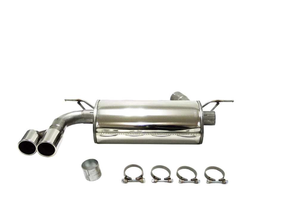 Bakre ljuddämpare i rostfritt stål för BMW F30/F31 320i och 330i (Sedan/Touring) samt F32/F33/F36 420i och 430i (Coupé, Cabrio och Gran Coupé) årsmodell 2015–2019. Systemet är kompatibelt med både bakhjulsdrivna och xDrive-modeller.