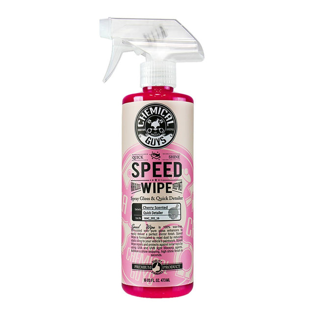 Chemical Guys Speed Wipe är den snabba och effektiva Quick Detailern som direkt förhöjer glansen på din bil. Den rengör varsamt lacken, skapar en antistatisk yta och ger en spegelblank finish på bara några minuter. Med sin underbara körsbärsdoft blir bilvården både enkel och njutbar.
