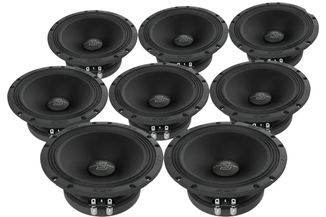 Detta paket innehåller 4 par (8 st) högtalare, vilket gör det perfekt för dig som vill bygga ett riktigt kraftfullt och balanserat frontsystem med fokus på både ljudkvalitet och tryck.