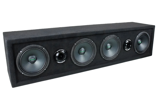 Detta är ett komplett högtalarsystem med 4x 6,5" DeafBonce Sylvester midbasar, 2 horn-diskanter samt kondensatorer, färdigt monterade i en robust sluten låda.