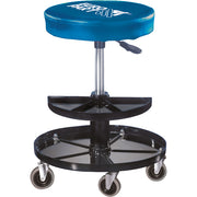 Stolen är utrustad med två verktygsplattor – varav en stor platta (Ø 420 mm) – som kan roteras 360° för att snabbt ge åtkomst till nödvändiga verktyg och smådelar. Den större plattan rymmer både handverktyg, reservdelar och förbrukningsmaterial, vilket effektiviserar arbetsflödet direkt vid arbetsplatsen. De fem lättrullande hjulen (Ø 75 mm) gör stolen enkel att flytta och positionera, även på verkstadsgolv med hög belastning.