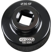 KS Tools KS150.9291 är en 6-kantig oljefilternyckel med en diameter på 36 mm, särskilt utvecklad för professionell demontering och montering av oljefilterkapslar. Med sin 1/2" anslutning passar den de flesta spärrskaft och momentnycklar, vilket gör den till ett mångsidigt verktyg i verkstaden.