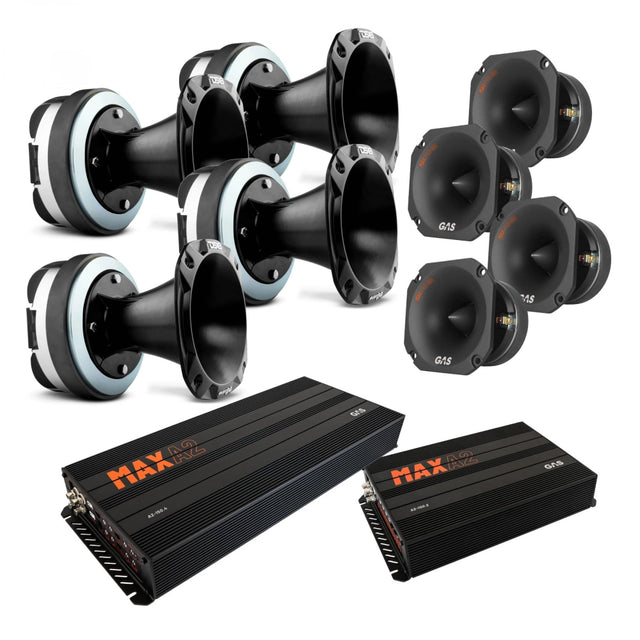 Paketet innehåller fyra kraftfulla DS18 PRO-DKH2F drivers, fyra GAS PT2-384 horndiskanter och två GAS MAX-serie slutsteg – MAX A2-150.4 och MAX A2-100.2 – för maximal effekt och kontroll.