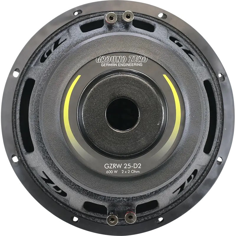 Med Ground Zero GZRW 25-D2 får du en subwoofer som är byggd för att leverera kraftfull och djup bas även i mer kompakta utrymmen. Tack vare den robusta konstruktionen och dubbla 2 Ohms-talspolar är den ett flexibelt och pålitligt val för alla som vill bygga ett prisvärt men kraftfullt bassystem.
