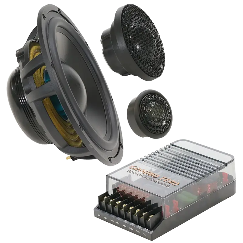 Systemet levereras komplett med Ground Zeros ikoniska hexagonformade skyddsgaller och passar perfekt för high-end-installationer där precision och detaljer är i fokus.