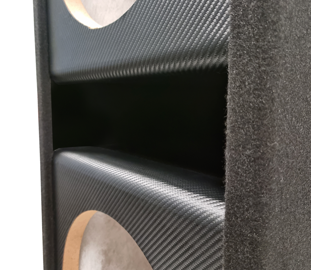4-AI212SLOT är en MDF-baserad portad låda med hög volym och kraftig portdesign, framtagen för dubbla 12-tums subwoofers.