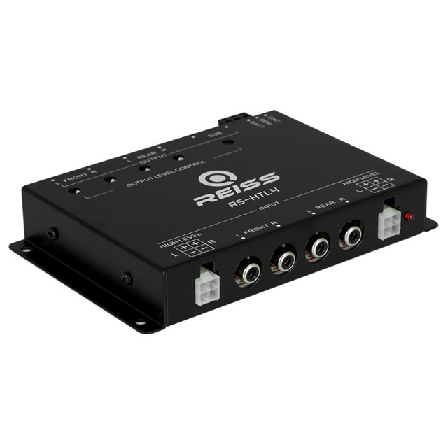 Reiss RS-HTL4 är en avancerad 6-kanalig high/low-konverter utvecklad för att integrera eftermarknadsförstärkare med originalbilstereosystem. Den erbjuder både hög- och lågnivåingångar och levererar justerbar utgångsnivå upp till 7V, vilket gör det möjligt att optimera signalstyrkan för maximal ljudkvalitet och störningsfri överföring. RS-HTL4 är det perfekta tillbehöret för dig som vill uppgradera bilens ljud utan att byta huvudenhet.
