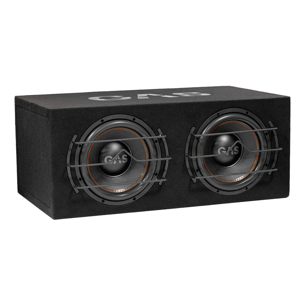 GAS MAX B1-212 är konstruerad för maximal basprestanda med två specialbyggda 12-tums MAX S1-element. Lådan är portad med en precisionsstämnd slotport på 30 Hz, vilket ger en djup, kraftfull och kontrollerad bas. Kabinettet är byggt i kraftig MDF med dubbla bafflar, interna stag och rabbet-/dado-fogar för stabilitet och långvarig prestanda under hård belastning. De svartkromade push-terminalerna och A-star metallgaller skyddar elementen och ger lådan en stilren och robust design.