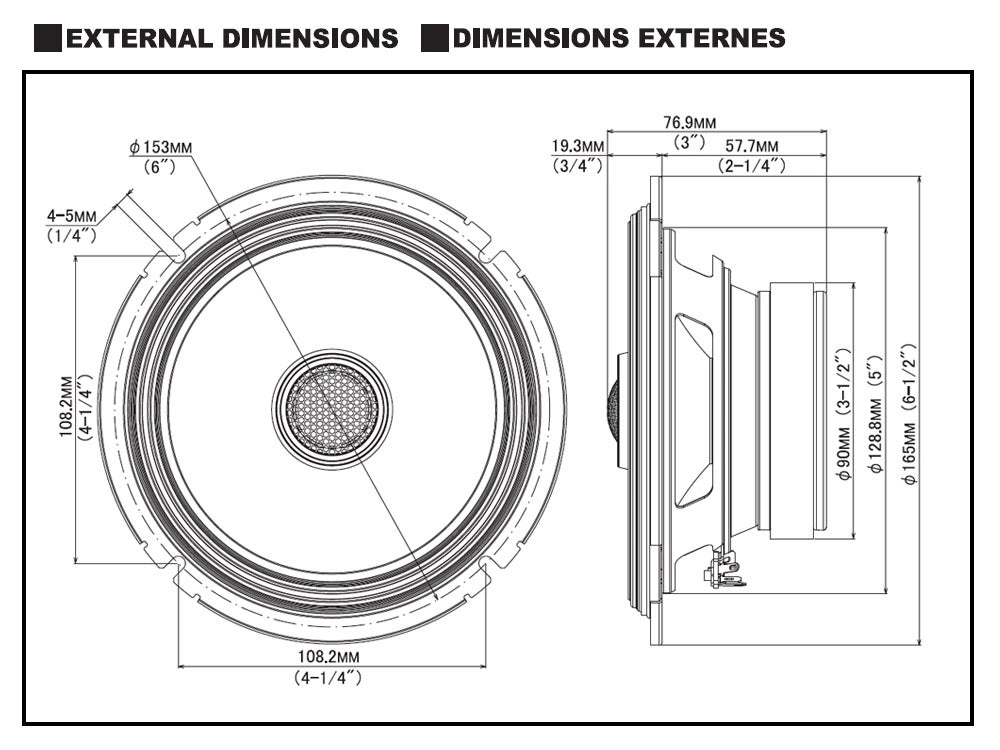 Med 4 ohm impedans och 88 dB känslighet spelar högtalarna starkt även på begränsad effekt. Monteringsmåtten gör dem kompatibla med många bilmodeller utan anpassning.