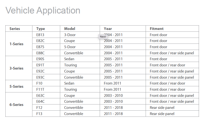 | Passar bilmodeller | BMW 1-, 3-, 5- och 6-serien (se lista ovan) |