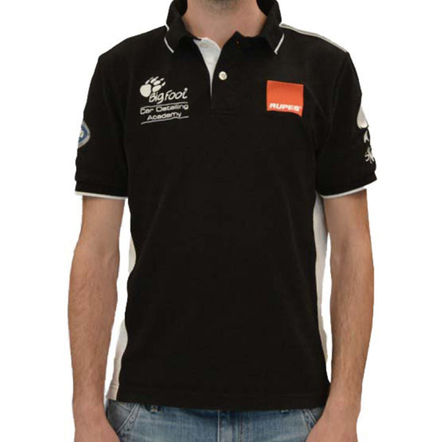 Exklusiv Rupes BigFoot Academy-piké i svart/vitt med klassisk tvåknappsdesign.