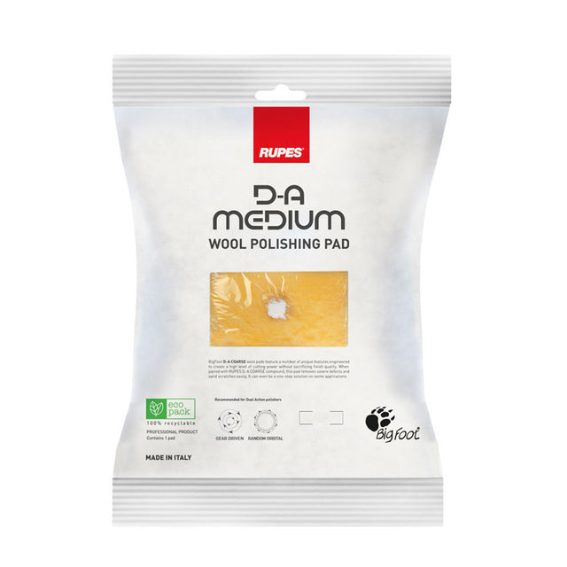 Rupes BigFoot D-A Medium Wool 130 mm är en avancerad ulltrissa designad för oscillerande polermaskiner. Med 15 mm naturlig ull och ett optimerat skumstöd levererar den både effektiv avverkning och en imponerande finish – idealiskt för fordon med medelhård till hård lack.