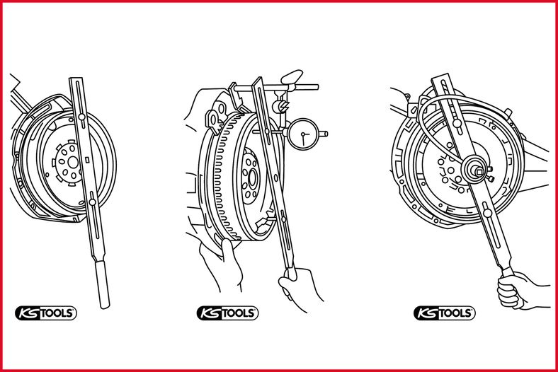 KS TOOLS Tvåmassefrihjul testverktyg med gradskiva och mätklocka