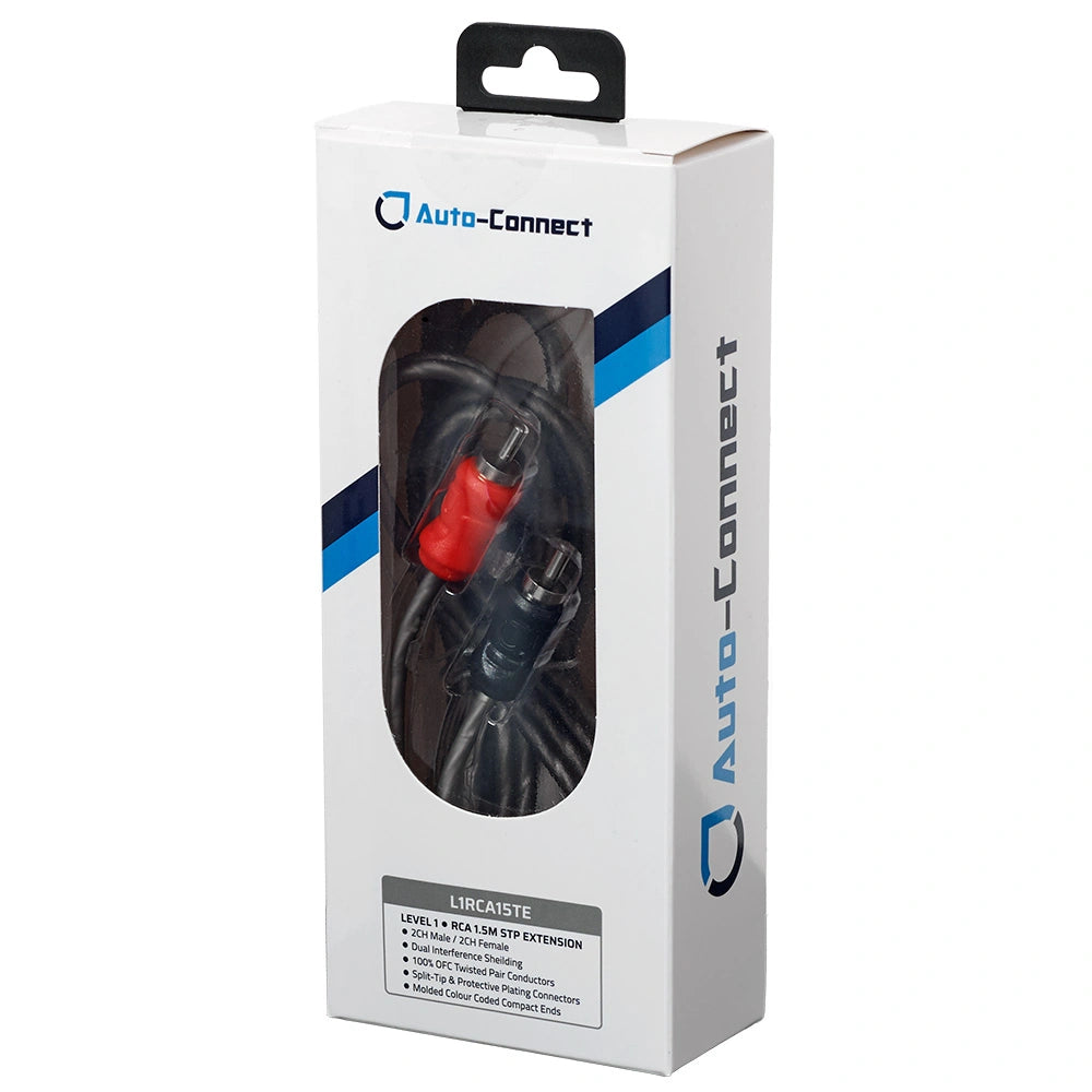 Auto-Connect L1RCA15TE är en 1.5 meter lång 2-kanalig RCA-förlängningskabel med STP-konstruktion (Shielded Twisted Pair), framtagen för att leverera klar och störningsfri signalöverföring i fordon och ljudsystem där hög prestanda krävs.