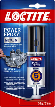 Loctite Power Epoxy Metal är ett extremt starkt, tvåkomponentsmetall-epoxylim levererat i en praktisk doseringsspruta med integrerad spatel för enkel applicering. Den metallfärgade, snabbt härdande formulan är särskilt framtagen för snabb reparation av läckor i metallrör, tankar och andra metallkomponenter, men fäster även mot sten, marmor och betong. Limfogen tål både vatten, olja, bensin och utspädda syror för långvarig hållbarhet.