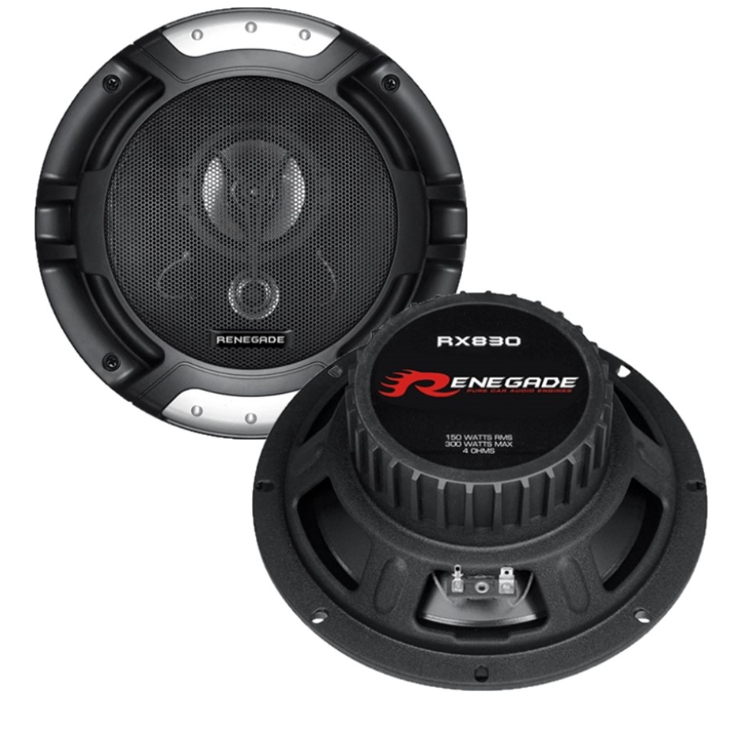 Renegade RX830 är ett par 8-tums 3-vägs triaxialhögtalare utvecklade för dig som vill ha kraftfullt och detaljrikt ljud i bilen. Med en effekttålighet på 150W RMS (300W Max) erbjuder RX830 ett fylligt och klart ljud med bred frekvensåtergivning – perfekt för “custom”-installationer eller uppgraderingar av originalhögtalare.