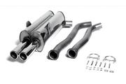 Avgassystemet har en rördiameter på 2x63,5 mm och dubbla ändrör på 2x70 mm, vilket ger bilen ett sportigt utseende och en distinkt ljudprofil som är typisk för M3-modellerna. Konstruktionen i rostfritt stål säkerställer hög korrosionsbeständighet och lång livslängd även vid frekvent användning.