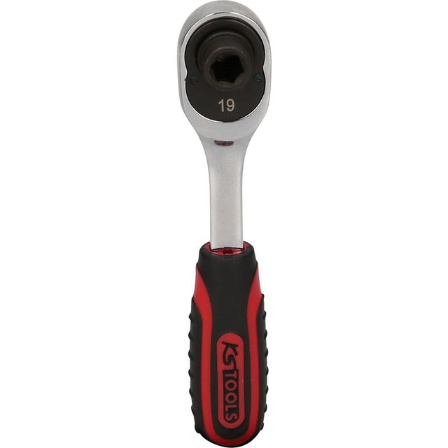 Bitspärrhandtag ur CHROMEplus-serien från KS Tools. Kompakt spärrnyckel med 1/4" drivning och en finmekanisk spärrmekanism med 72 tänder, vilket ger små omtagsvinklar för arbete i trånga utrymmen. Total längd 115 mm.
