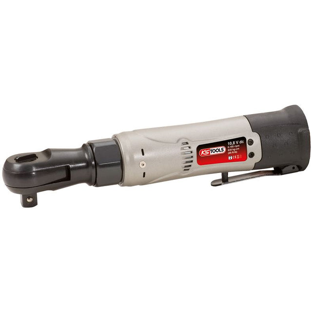 Batteridrivet spärrskaft från KS Tools med 1/2" fyrkantsfäste och integrerad omkopplingsspak. Utrustat med ett 10,8 V litiumjonbatteri, ett maximalt vridmoment på 62 Nm och ett varvtal på 180 varv/min. Konstruerat med plastkåpa och levereras med tillbehör. Verktyget uppfyller standarderna DIN3120 och ISO1174.