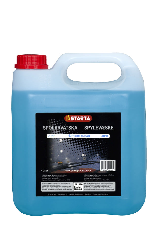 Egenskaper STARTA Spolarvätska färdigblandad tar effektivt bort vägsalt, trafikfilm och annan smuts, skadar inte bilens gummilister, torkarblad eller lack. Fryspunkt cirka -18°C. STARTA Spolarvätska är baserad på miljövänlig bioetanol.