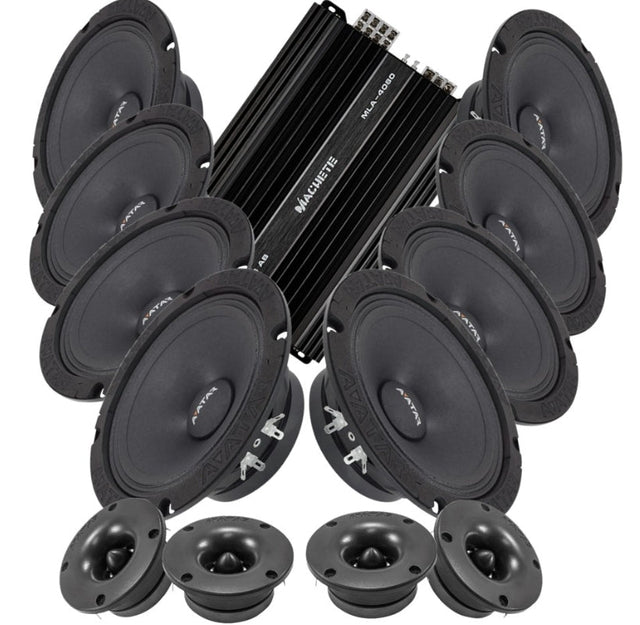 Paketet består av hela 8 stycken 6,5" mellanregisterhögtalare från Avatar, två par klassiska TBR-39 horndiskanter, samt ett 4-kanaligt slutsteg från Machete (MLA-4120) som driver systemet med enkelhet. En idealisk lösning för dig som vill få mycket ljud för pengarna – både i bil, raggarplanka eller andra ljudprojekt.