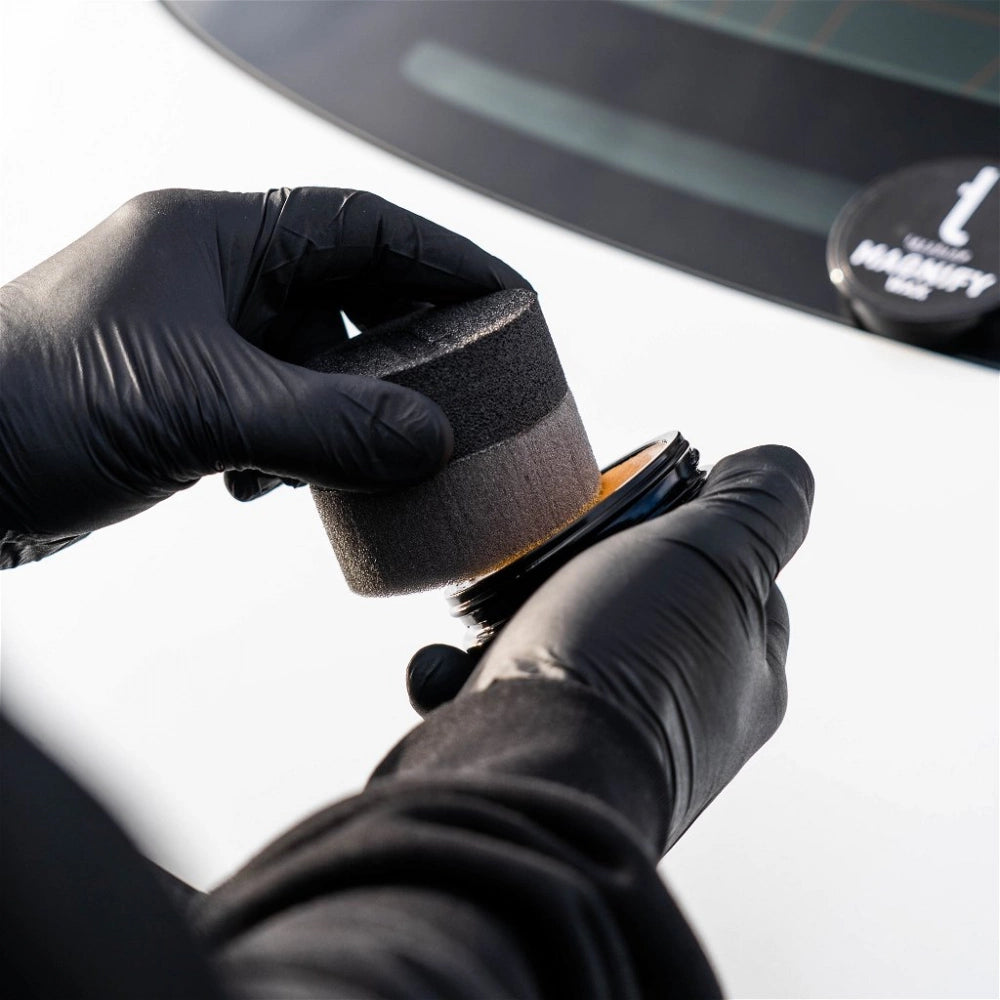 Magnify appliceras enkelt med en applikator och buffas av med mikrofiberduk – gärna i två steg för bästa resultat. Vid korrekt applicering räcker 5–10 ml till en normalstor bil.
