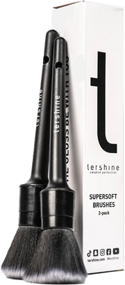 Tershine Brush Supersoft Kit innehåller två extremt mjuka och kemikalieresistenta detaljpenslar, speciellt utvecklade för att rengöra känsliga ytor både ut- och invändigt på fordon. Penslarnas borst har en mycket mjuk och tät struktur med liknande känsla som en sminkborste, vilket gör dem idealiska för användning på känsliga material utan risk för repor.