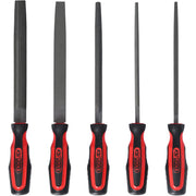 Innehåller en platt-, halvrund-, rund-, fyrkants- och trekantsfil vardera med en längd på 200 mm och slaget 2