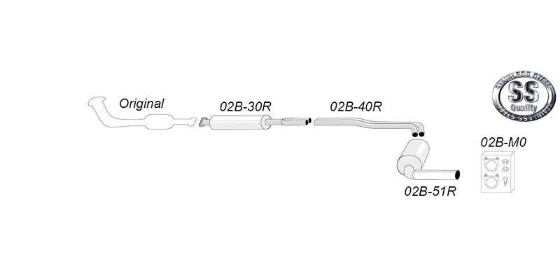 Systemet är EWG-typgodkänt (E2BH0), vilket innebär att det är lagligt för vägbruk inom EU. Med en vikt på 21,5 kg är avgassystemet stabilt byggt och erbjuder både hållbarhet och förbättrad körkänsla.