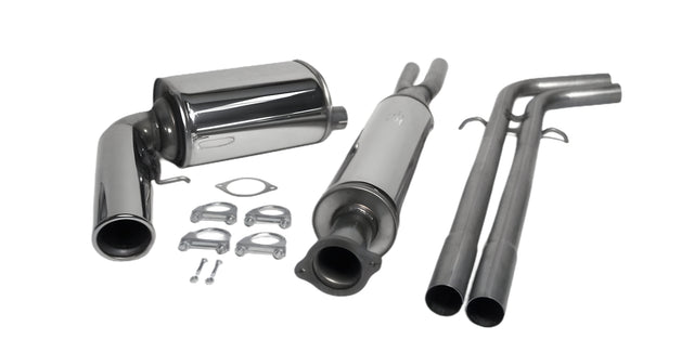 Detta kompletta avgassystem i rostfritt stål är framtaget för Volvo V70N Turbo 2WD med motoralternativ 2.0T, 2.4T, 2.5T, T5, 2.4D, 2.5D och D5, tillverkade mellan 2000 och 2004(5). Systemet monteras efter katalysatorn och levereras som ett färdigt kit som passar bilens originalupphängningar, vilket gör installationen smidig och enkel.