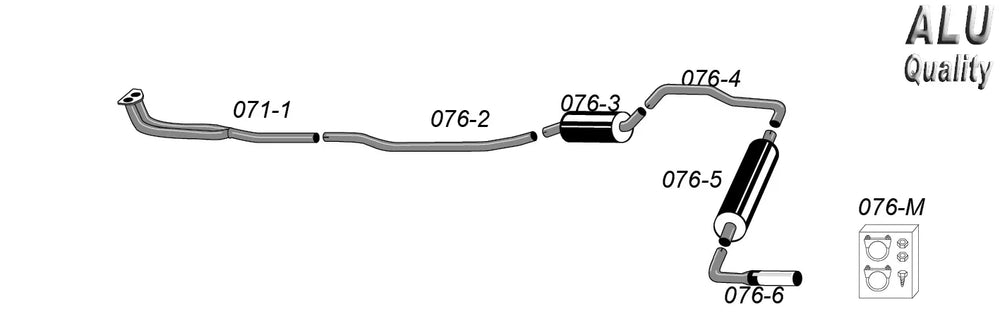 Systemet är tillverkat i hållbart stål med noggrant anpassade rör och dämpare, vilket ger lång livslängd, hög tålighet mot värme och bibehållen prestanda över tid. Konstruktionen är anpassad för att monteras på bilens originalfästen, vilket ger en smidig installation med perfekt passform.