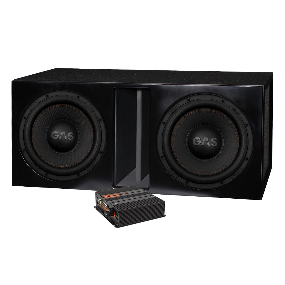 2-pack GAS MAX S1-12D1 i portad låda med MAX PA1-3000.1DZ1, baspaket