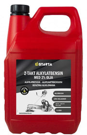 STARTA Alkylatbensin 2-takt är en högkvalitativ, miljövänlig bränsleblandning speciellt framtagen för 2-taktsmotorer. Den innehåller 2 % oljeblandning vilket säkerställer optimal smörjning och motorskonsam drift. Alkylatbensinen är praktiskt taget fri från skadliga ämnen som svavel, bensen, alkener och andra omättade kolväten, vilket bidrar till en renare förbränning och minskad miljöpåverkan.