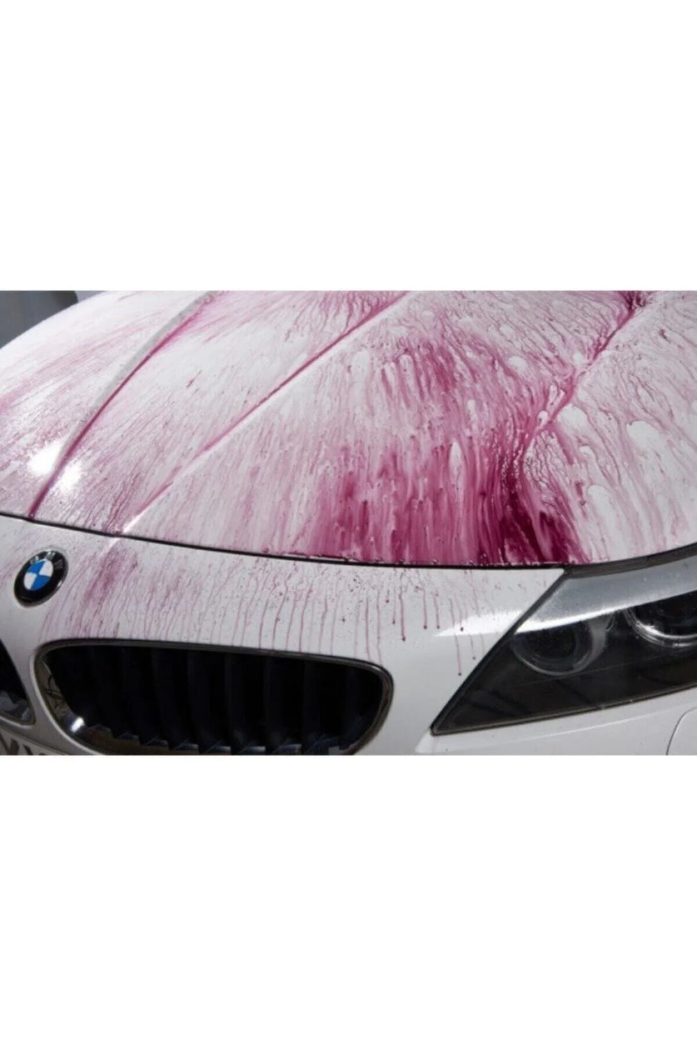 Metallpartiklar från bromsdamm och industriellt nedfall fastnar ofta i lacken och gör ytan skrovlig och matt. Magma löser upp dessa partiklar kemiskt, vilket syns genom en röd färgreaktion när medlet börjar verka.