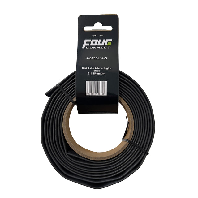 FOUR Connect 4-ST3BL14-G shrink tube, 3:1 Black with glue 15mm 3m