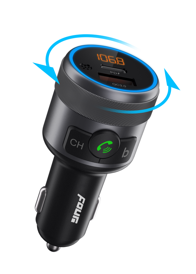 Four Mobile 4-FMTBT1.2 är en avancerad FM-sändare med Bluetooth 5.1 som gör det enkelt att spela upp musik trådlöst eller hantera telefonsamtal direkt via bilens FM-stereo.