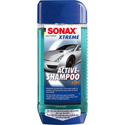 SONAX Xtreme Activeshampoo 2in1 är ett kraftfullt, högkoncentrerat bilschampo utvecklat för att lösa upp svår smuts som fågelspillning, vägsmuts och insektsrester – även utan att spädas. Den avancerade formulan är fri från både vax och lösningsmedel, vilket innebär att det befintliga vaxskiktet på fordonet inte påverkas vid tvätt.