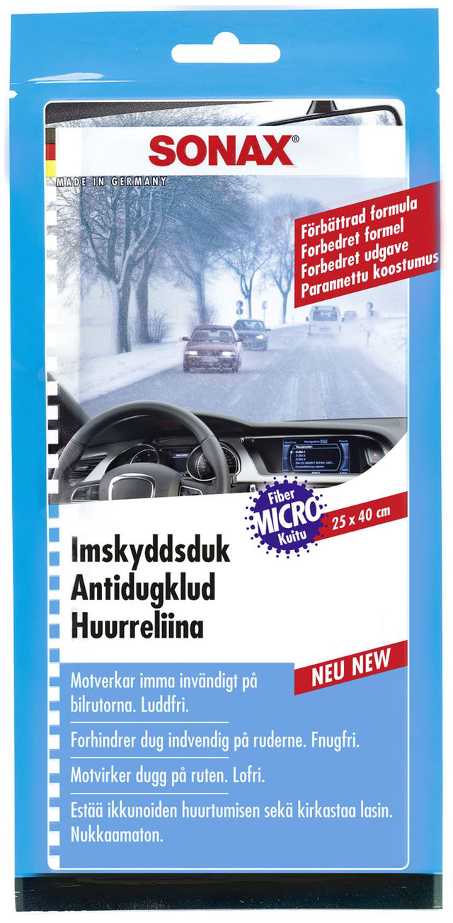 Sonax Imskyddsduk – Imfri sikt på bilrutor, visir och glasögon